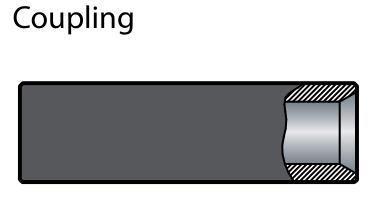 ![]() | Semi-Bridge Coupling Small non-thread bridge in the center Steel cannot thread past bridge area Smaller diameter steel end portions fit together in the center bridge area of the coupling Semi-bridge coupling are most suitable to high orque machines |